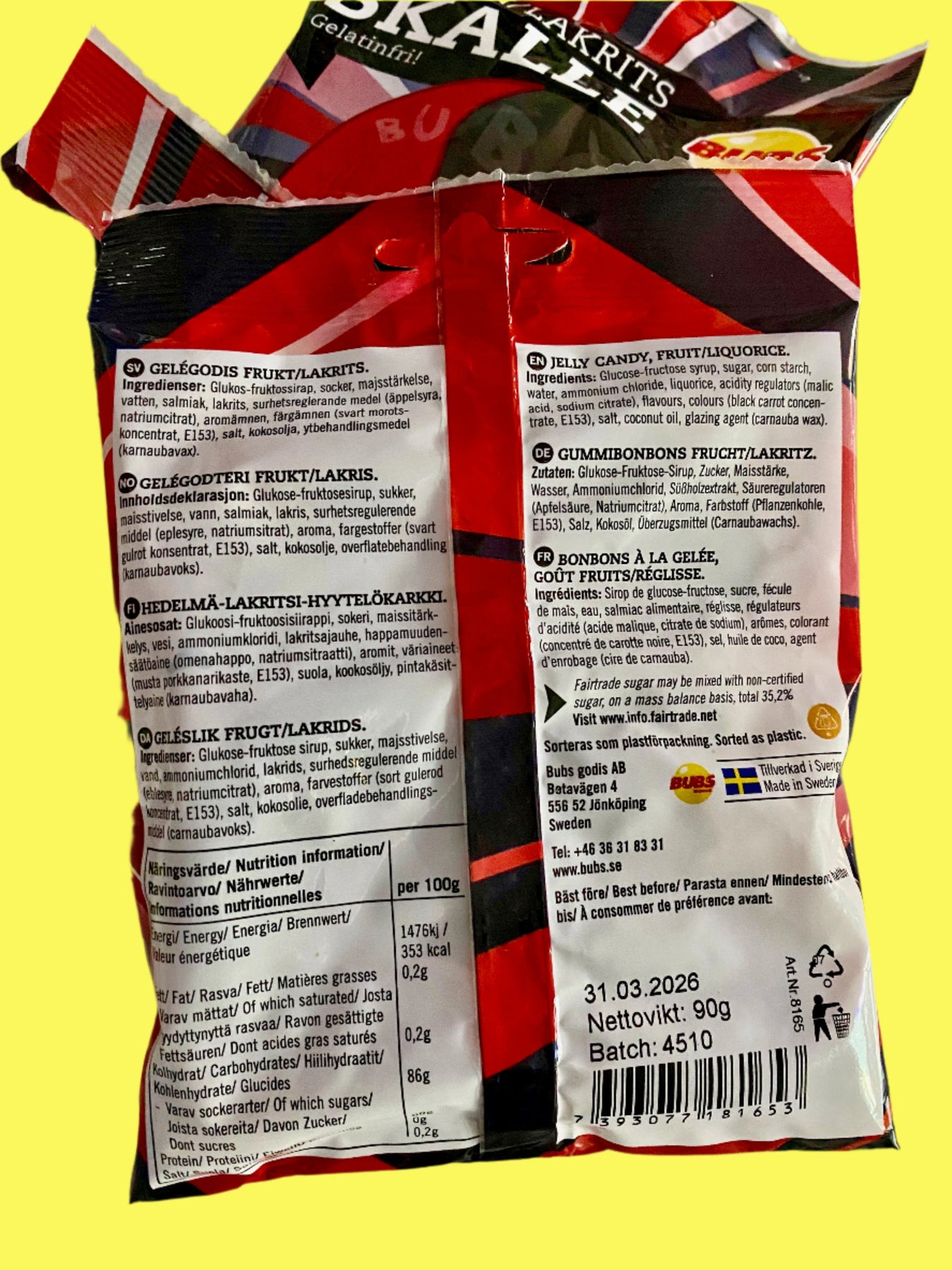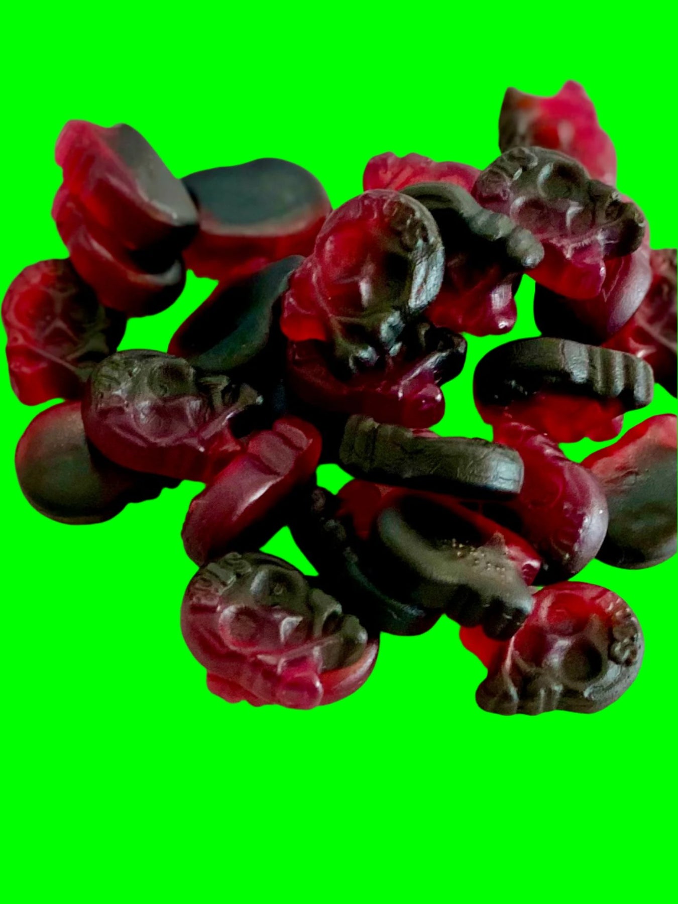 BUBS Raspberry Salty Licorice Foamy Skulls Swedish Candy Gluten and Gelatin Free