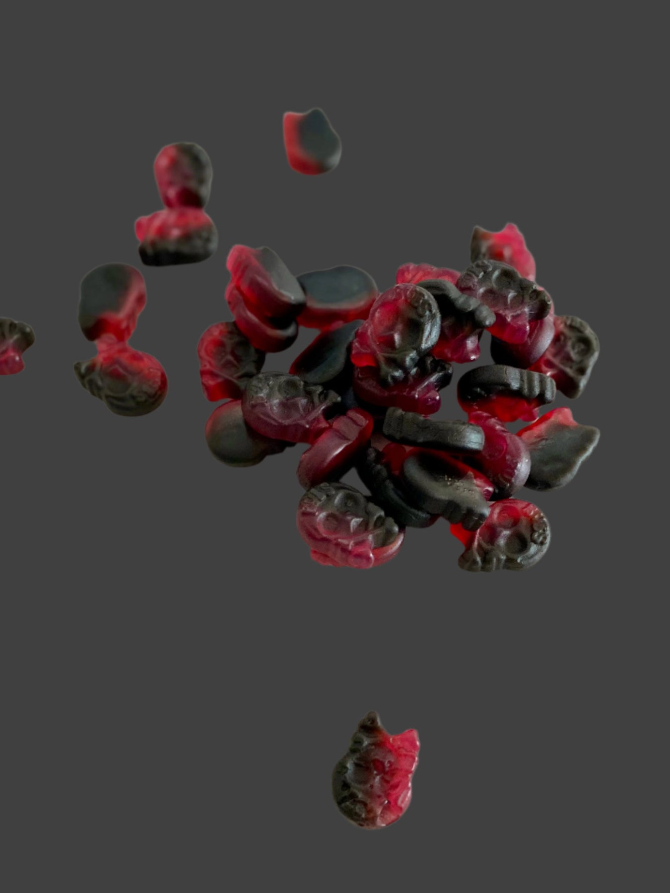 BUBS Raspberry and Salty Licorice Mini Gummy Skulls package